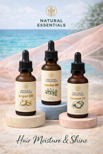 Hair Moisture & Shine Package is a nourishing blend of premium natural oils formulated to deeply hydrate hair and restore its natural glow. This package contains Argan Oil, Jojoba Oil, and Coconut Oil — carefully selected to moisturize, soften, and enhance shine for healthier-looking hair.